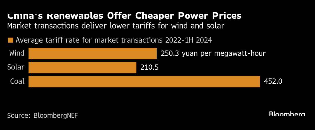 开发商始终致力于降低成本,使更多清洁能源能够以更具市场竞争力的价格取代煤炭。根据相关数据,从2022年到2024年上半年,公开市场上销售的太阳能和风能的平均价格分别约为每兆瓦时210元(29美分)和250元,而煤炭的价格则超过450元 。